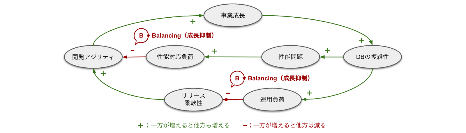 データベースは単なる保管場所ではありません。 システム全体のスケーラビリティと信頼性、ひいては開発速度をも左右する中核コンポーネントです。 その中核的な性質ゆえに、成長の過程で複雑性を生み、自らの成長を阻むという構造的なパラドックスを内包しています(図 1 参照)。